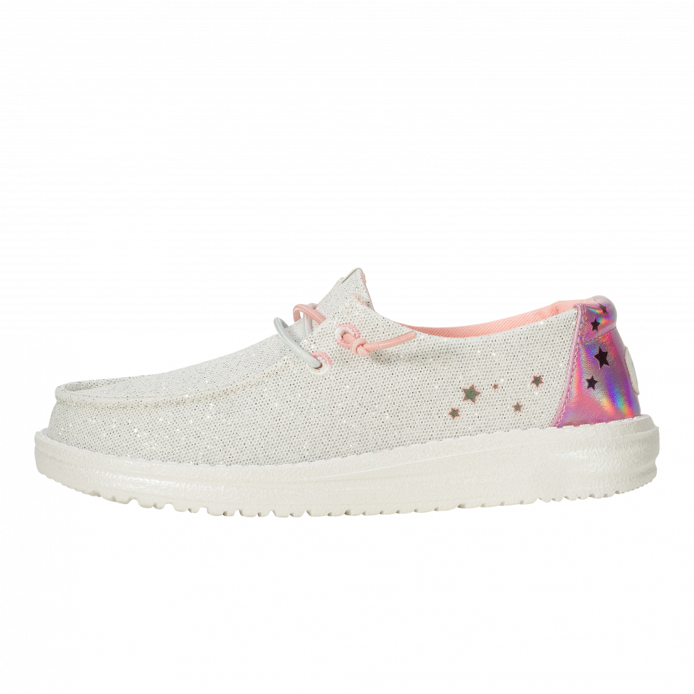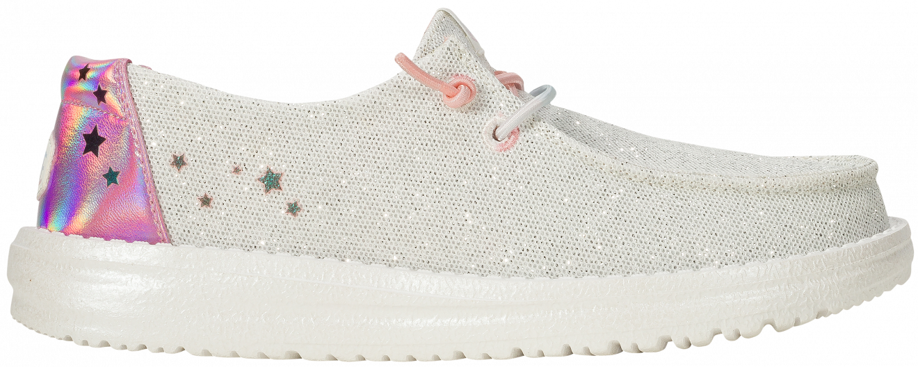 Odhaľte v sebe svoju vnútornú superhviezdu s modelom Wendy Y Iridescent Star! Tieto oslnivé ľahké topánky sa dodávajú v štyroch trblietavých štýloch. Vďaka klasickému pohodliu HEYDUDE™ a jednoduchému štýlu predstavujú dokonalý spôsob, ako sa blysnúť a zažiariť počas celého leta. Pokropte svoj letný šatník trochou hviezdneho kúzla.