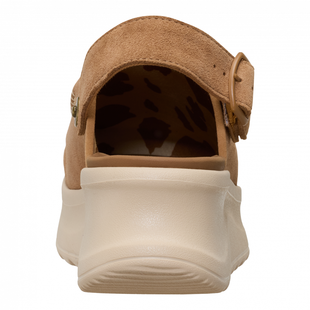 Táto topánka HeyDude Delray Clog Suede ponúka štýl aj praktickosť. Nie je taká ťažká, ako by sa mohlo zdať, a skvelo poslúži na bežné nosenie aj na formálnejšie udalosti. Mäkký semišový zvršok spočíva na našej najvyššej platformovej podošve a nechýba ani flexibilný remienok, ktorý možno nosiť cez priehlavok alebo okolo päty.