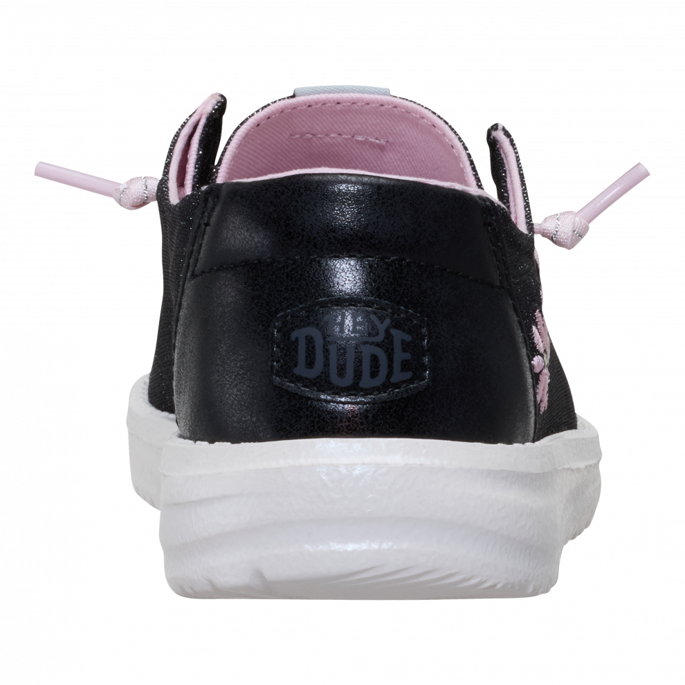 Topánky Wendy Y Shimmer Flower majú trblietky a vyšívané kvety pre extra nádych zábavy. Sú ľahké, pohodlné a hodia sa ku každému outfitu. Navyše majú šnúrky, ktoré netreba viazať, vďaka čomu sa ľahko obúvajú a vyzúvajú.