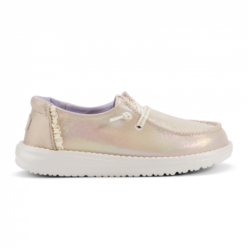 Tieto trblietavé topánky Wendy pre staršie deti dokážu rozjasniť každý deň. Zaujmú lesklým, textilným zvrškom, ozdobeným hravými, mäkkými detailmi. Štýl easy-on prichádza so širokým lemom, do ktorého sa dá jednoducho vkĺznuť, a s elastickými šnúrkami, ktoré netreba viazať. Ľahké, pružné a pohodlné, sú ideálne na deň plný hry.