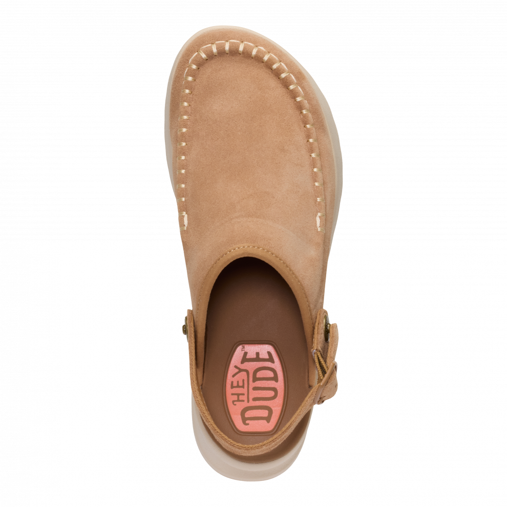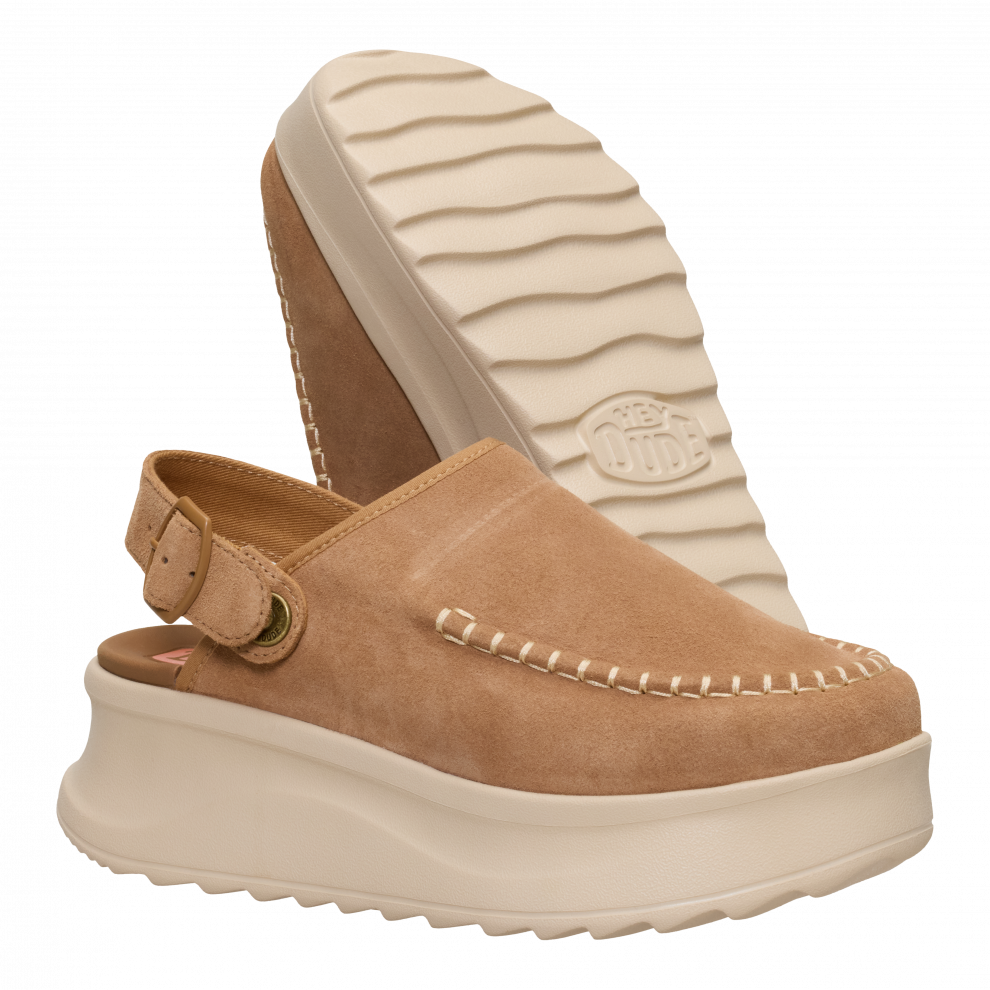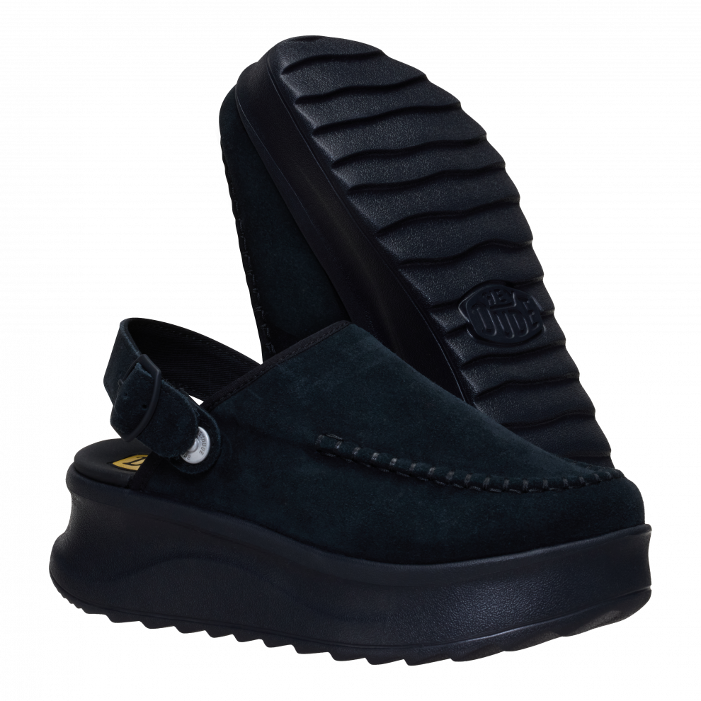 Táto topánka HeyDude Delray Clog Suede ponúka štýl aj praktickosť. Nie je taká ťažká, ako by sa mohlo zdať, a skvelo poslúži na bežné nosenie aj na formálnejšie udalosti. Mäkký semišový zvršok spočíva na našej najvyššej platformovej podošve a nechýba ani flexibilný remienok, ktorý možno nosiť cez priehlavok alebo okolo päty.