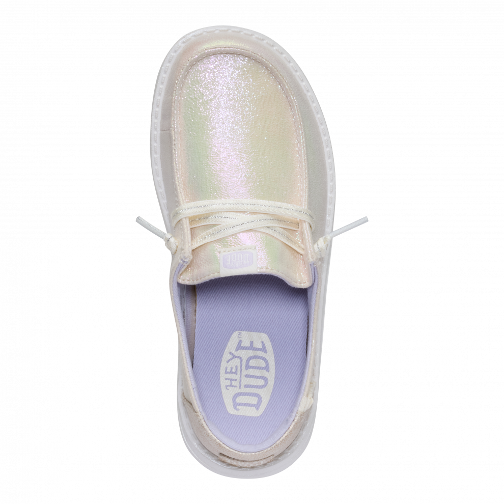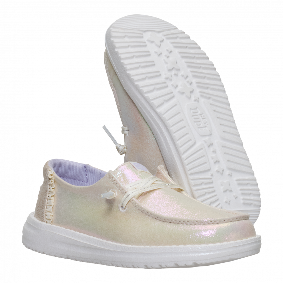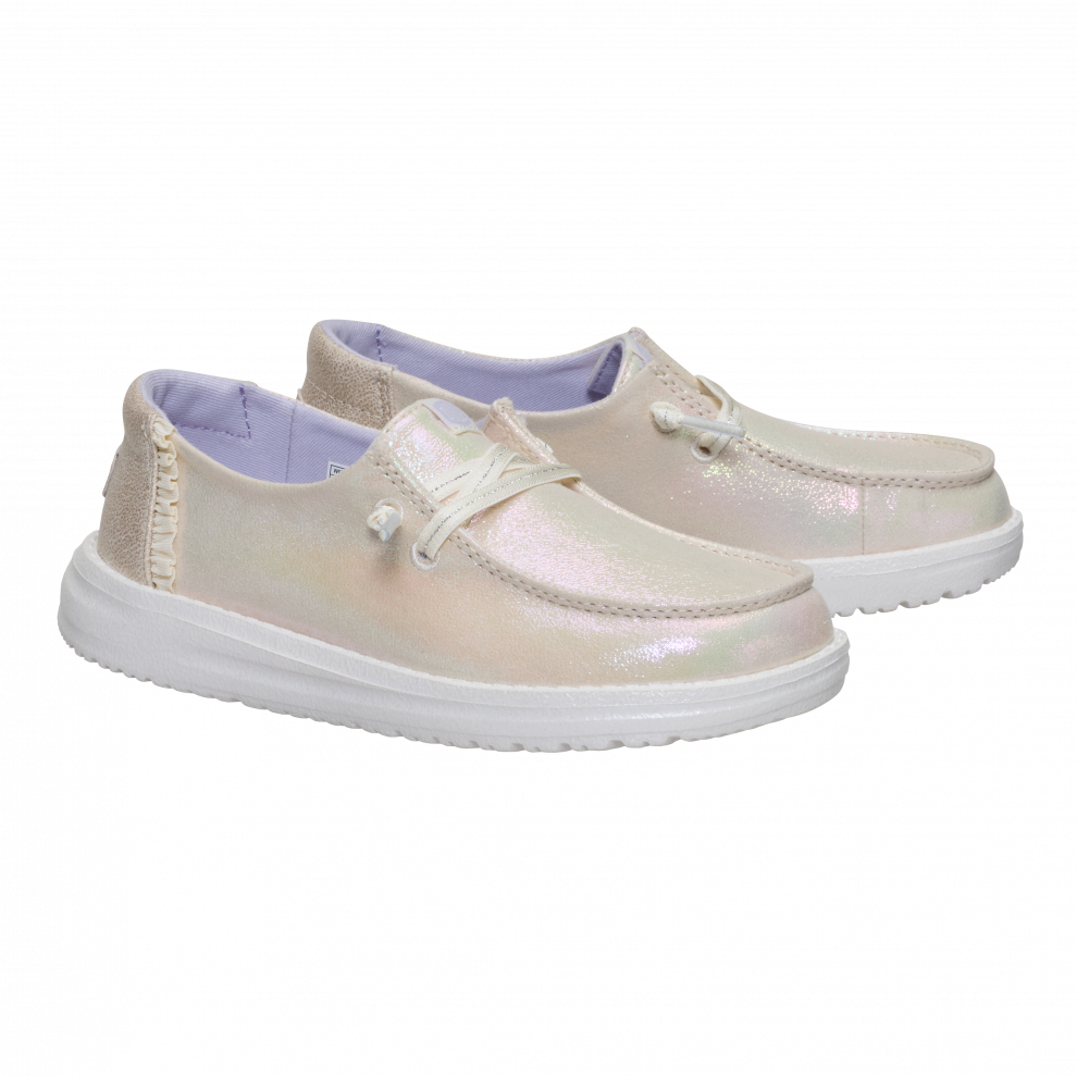 Tieto trblietavé topánky Wendy pre staršie deti dokážu rozjasniť každý deň. Zaujmú lesklým, textilným zvrškom, ozdobeným hravými, mäkkými detailmi. Štýl easy-on prichádza so širokým lemom, do ktorého sa dá jednoducho vkĺznuť, a s elastickými šnúrkami, ktoré netreba viazať. Ľahké, pružné a pohodlné, sú ideálne na deň plný hry.