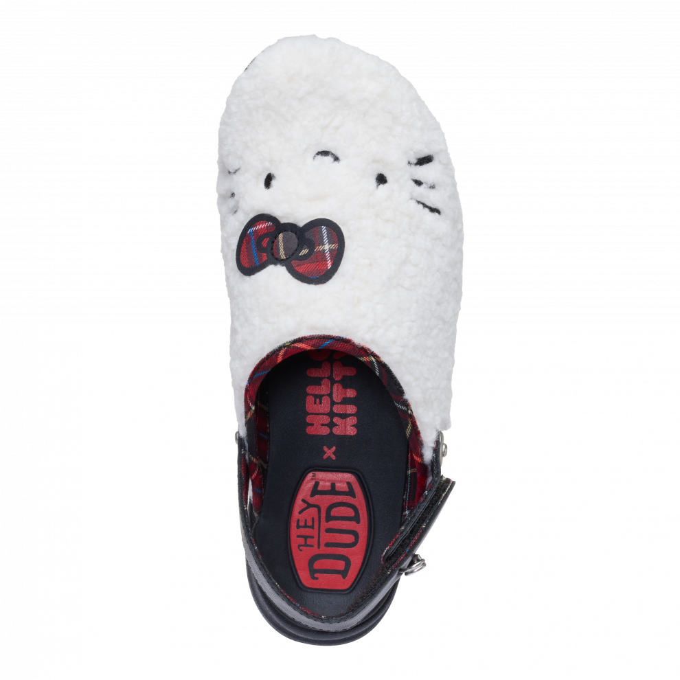 • Zvršok z imitácie ovčej kožušiny s motívom Hello Kitty a otočným, nastaviteľným remienkom vzadu